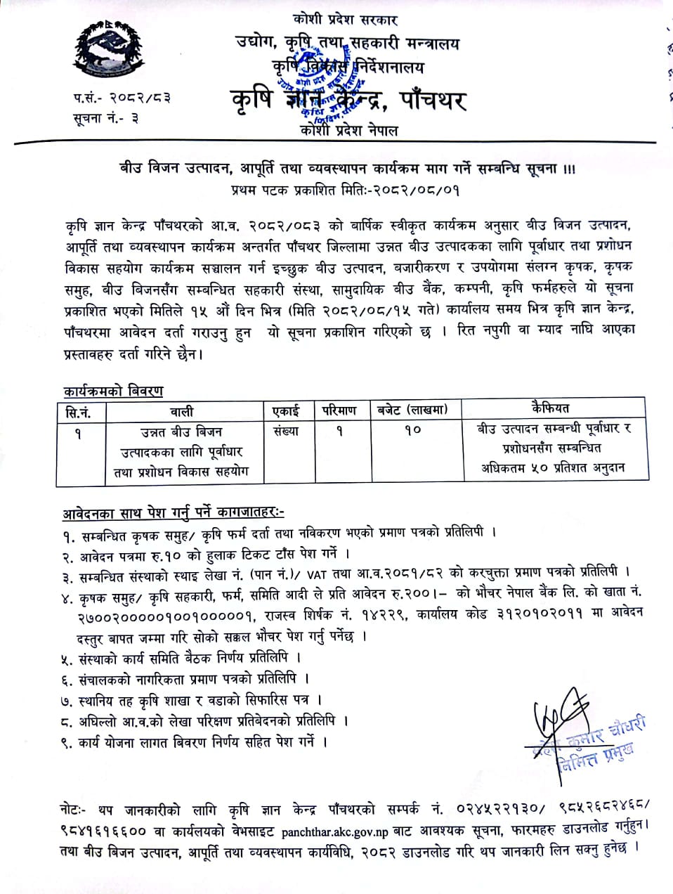 प्रदेश सरकार उद्योग, कृषि तथा सहकारी मन्त्रालय कृषि विकास निर्देशनालय