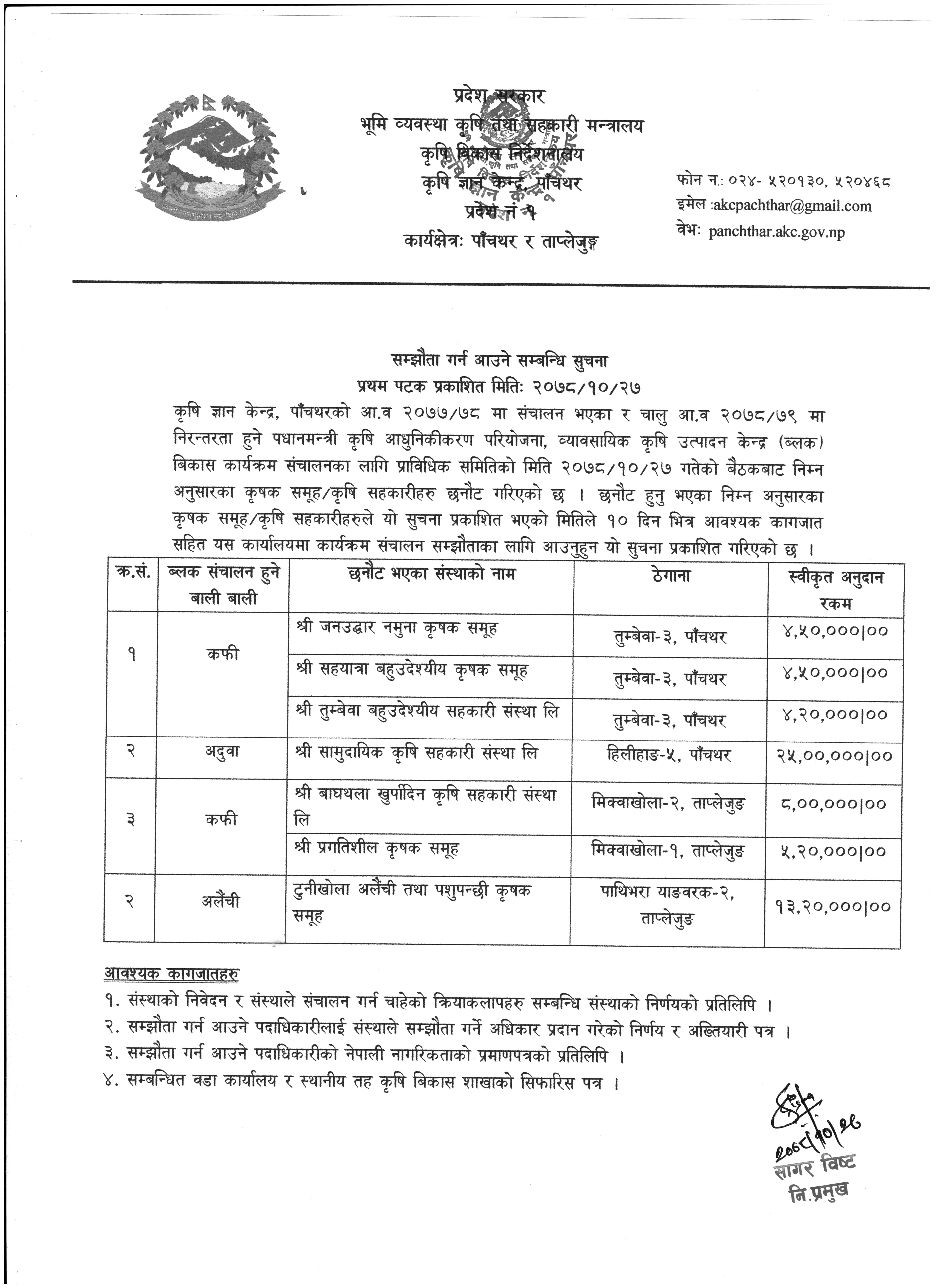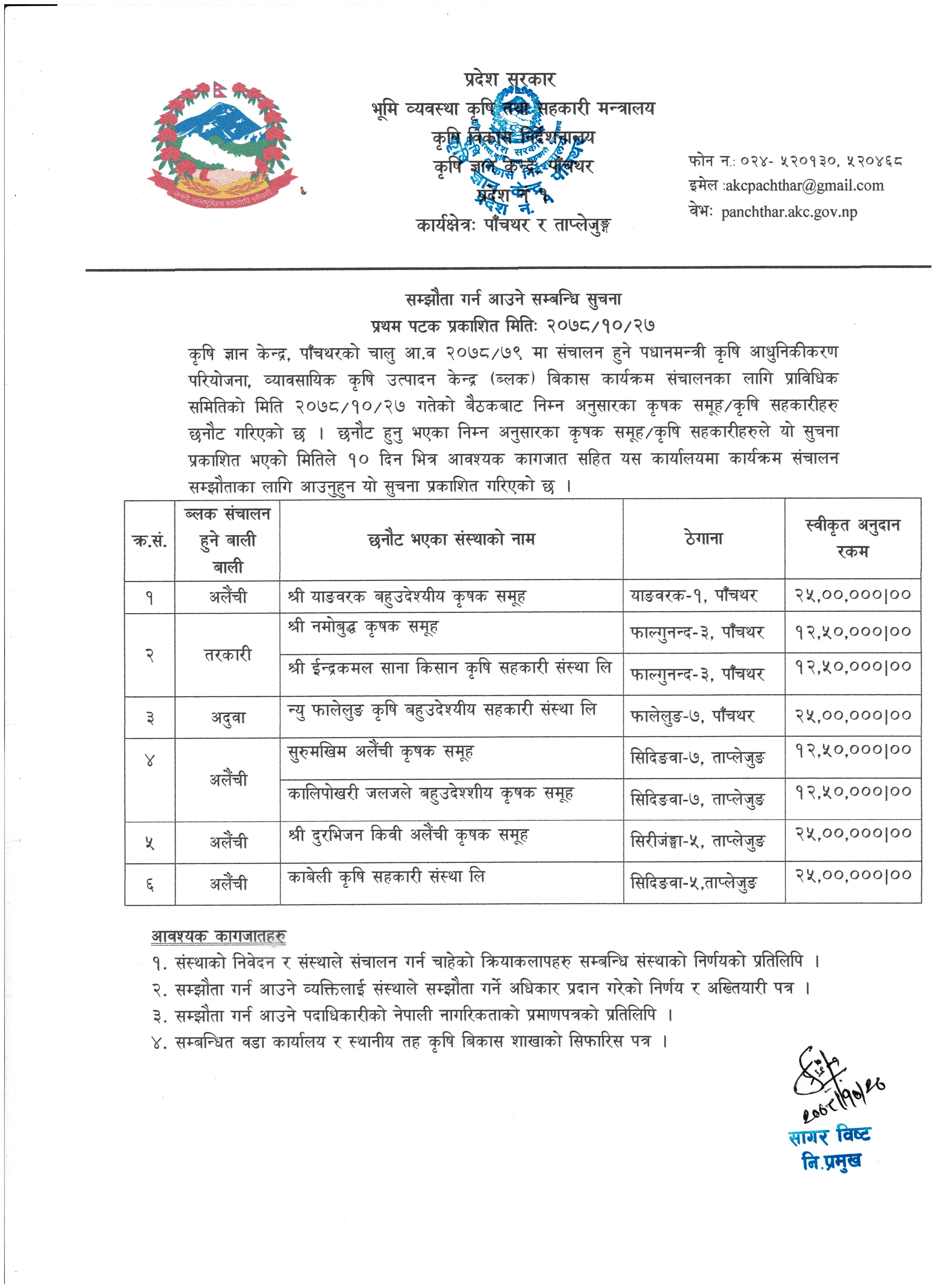 प्रस्ताव आह्वान सम्बन्धि दोस्रो पटक प्रकाशित सुचना-ताप्लेजुङ 2078-06-12 Closed !!!